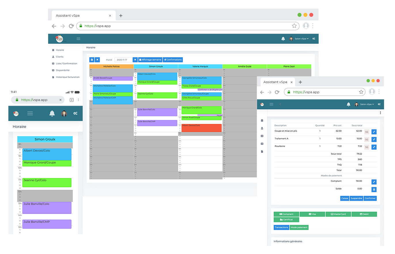 Développé au Québec, Assistant VSpa est une solution parfaitement adaptée à la réalité des salons d'ici
